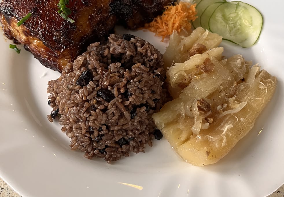 Arroz cocido con frijoles negros y especias, acompañamiento tradicional